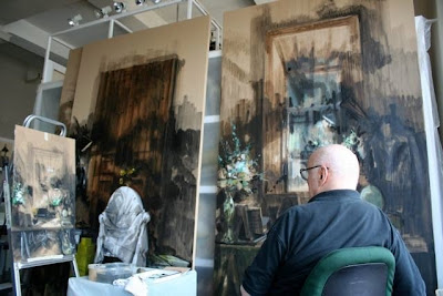 One of my dreams is to meet artist Jeremiah Goodman and watch him work. Since that hasn't happened in person yet, I'm glad I can see photos of him sketching and painting. Usually his work is on the smaller scale but the Swedish retailer Acne commissioned him to create three large canvas murals for their London boutique. I don't usually like to mention age but Mr. Goodman is 88 and his fantastic work is clearly keeping him young!